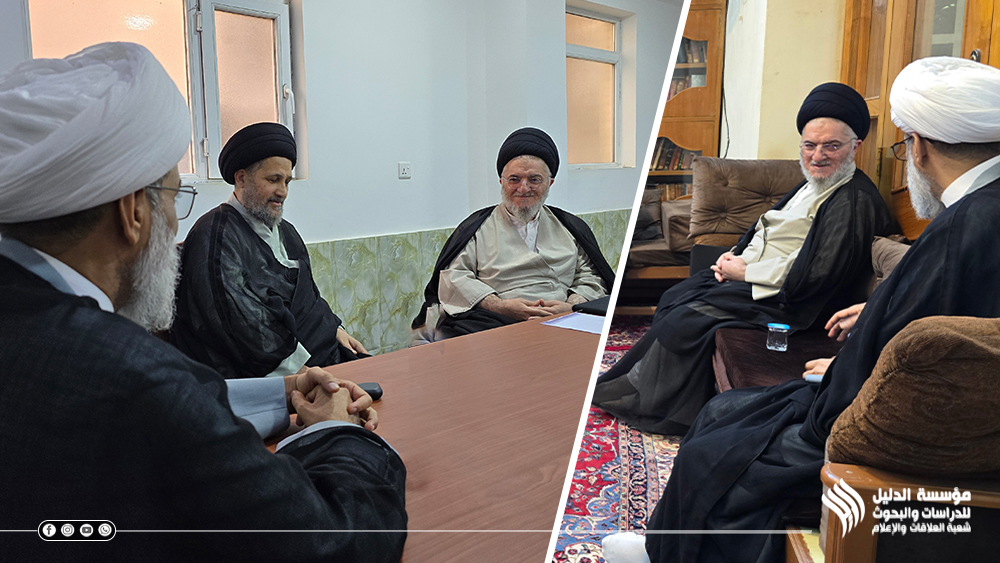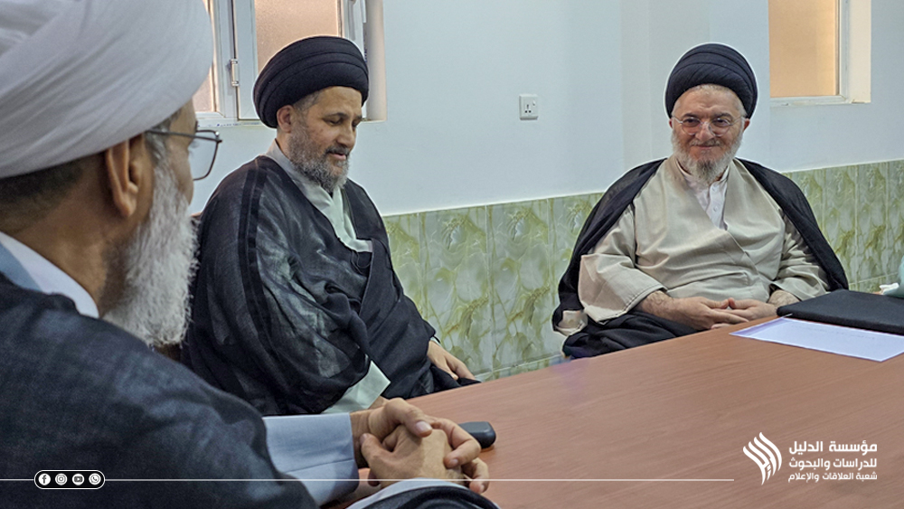بدورة رحب الأستاذ الحكيم برئيس المؤسسة ومرافقيه ورجا للدليل دوام النجاح في مشوارها العلمي والفكري مبديا استعداده للتعاون معها، ومؤكدا ضرورة التواصل بين المؤسسة والحوزة العلمية في النجف الأشرف.